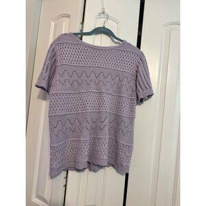 Light Purple Short-Sleeve Crochet Knit Top For Women XL