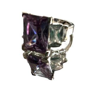 Light Purple and Diamond Baguette Ring Cubic Zirconia Sz 7 Womens Silver Band an