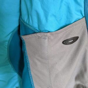 Light midlayer. Spandex panels with a light puffy-esque layer around the torso.