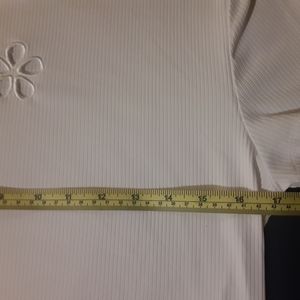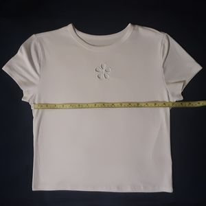 This cute Tee has a flower cut out sewn into the front and is lightly ribbed and has a very soft feel.