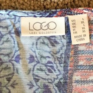 Very lite flowing chiffon like fabric. Ruffle around the bottom. Length to your hips, excellent condition