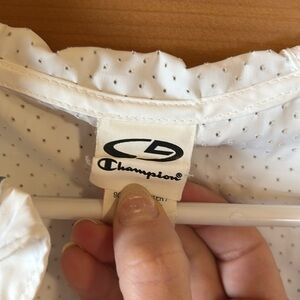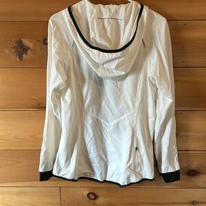 Lightweight running or workout jacket. It has pockets and a hood. *photos of it on someone by request.