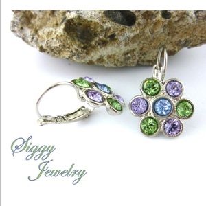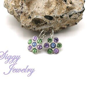Light Sapphire, Violet and Peridot Flower Earrings made with Austrian Crystal