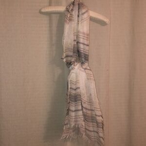 Light Sheer White Gray Black Tan Metallic Gold Raw Fringed Hem Long Scarf Wrap