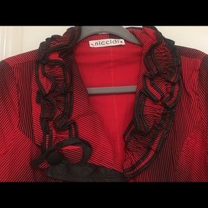 Black and Red light wight frilled jacket. Perfect for in-between season weather