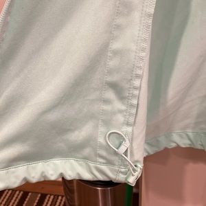 Excellent Condition. Only worn a couple of times. Columbia jacket in mint green colors. Hood with all working zippers. Darker grayish green sleeves and hood.