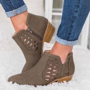 Light Taupe Cut Out Sides Boho Ankle Booties