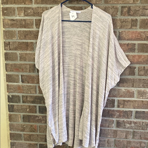 Light Taupe & Gray Open Front Short Sleeved Cardigan