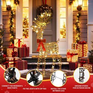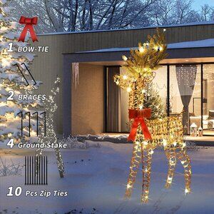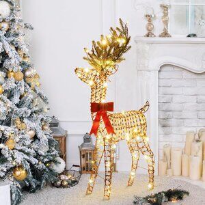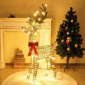 Light Up 3D Rattan Christmas Reindeer 47" w/ 70 LED Lights Outdoor Xmas Decor