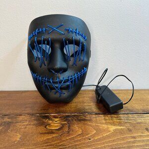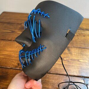 Light Up Blue Wire Horror Movie Halloween Mask Stitched Mouth and Eyes