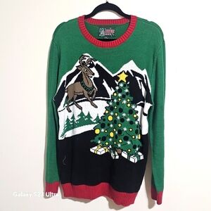 OVERSIZED LIGHT UP CHRISTMAS SWEATER Plushy and soft knit sweater with working LED lights woven in Christmas tree reindeer graphic. Oversized baggy fit. Ribbed hem, neck, and sleeve cuffs.