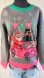 excellent condition Celebrate the holidays with this cheerful sweater featuring Santa in a pink car. Bright green and pink details add a festive touch.