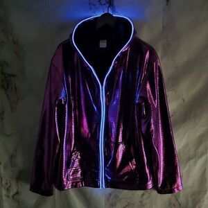 Light Up Jacket Men Large Purple Hood Rave Holographic Glow LED Electric Styles