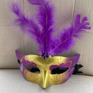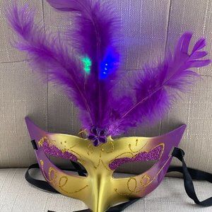 Light Up Mask Women Eye Mask Fashion Faux Purple Feather Masquerade Party Mask
