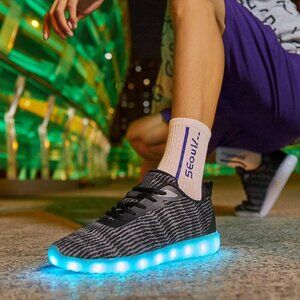 Features: These cool LED sneakers light up in 7 vibrant static colors and 4 fun dynamic effects, all controllable with a sleek, hidden button—perfect for parties, nights out, or festival fun. Lightweight and breathable fabric keeps your feet comfy all day and night, with a cotton lining to wick away sweat. The skid-proof soles add grip, so you can dance all evening without worry.