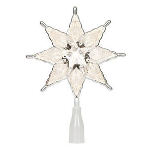 Light Up Silver-Trim Retro Clear 8-Point Star Christmas Tree Topper 8" Lit Incan