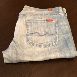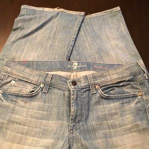 Bootcut jeans by 7 for All Mankind. Light wash denim with lots of whispering. Five pocket jeans. Please look at all photos carefully before purchasing. Size 29.