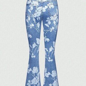Light Wash Casual Women's Floral Printed Bootcut High Waisted Stretch Jeans