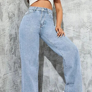 Light Wash Casual Women's High Waist Wide Leg Jeans