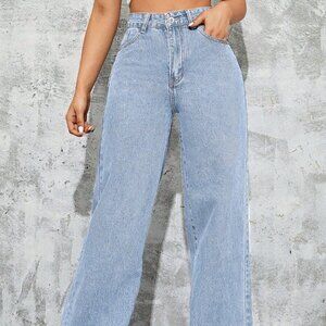 Light Wash Casual Women's High Waist Wide Leg Jeans