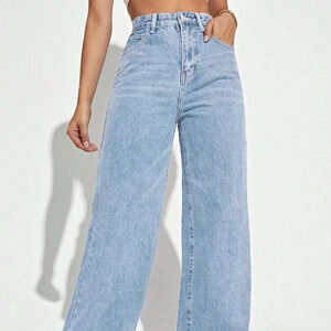 Light Wash Casual Women's High Waist Wide Leg Jeans
