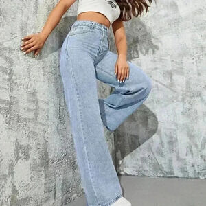 Light Wash Casual Women's High Waist Wide Leg Jeans