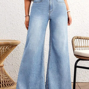 Light Wash Casual Women's Loose Fit Wide Leg Jeans w/Pockets
