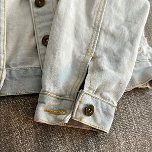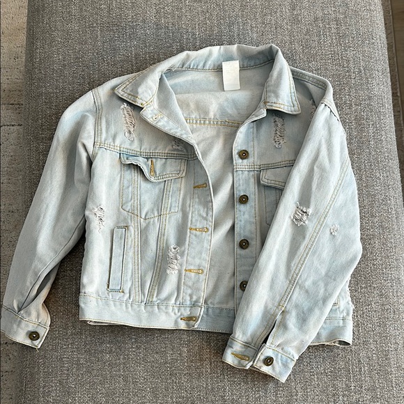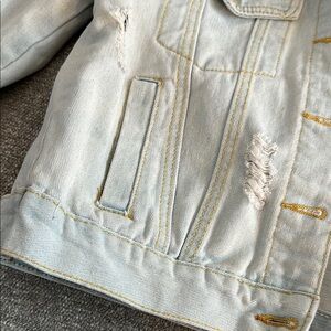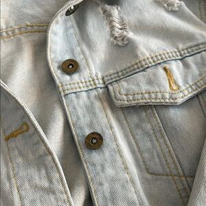Vintage light wash denim jacket with distressed details. Bought from boutique!