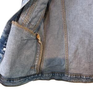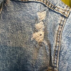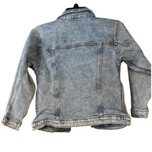 Classic distressed denim jacket in a light wash with a vintage-inspired, worn-in look. Featuring a button-up front, chest pockets, and subtle frayed details for an effortlessly cool style. Perfect for layering over casual outfits or adding an edgy touch to any look. 3/4 sleeves