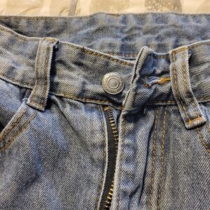 Light blue distressed jeans with heavy knee and thigh rips. Classic five-pocket style. Relaxed straight leg fit. Casual, edgy everyday staple.