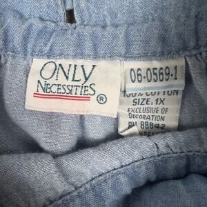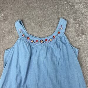 Light Wash Floral Denim Dress Only Necessities Embroidered Size 1X Cottage