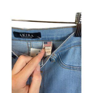 Akira Light Wash High Waisted Frayed Hem Skinny Jeans. Size 5 (W26). Material: 68% Cotton, 23% Modal, 7%T400, 1% Spandex. In gently used condition w/ no flaws. Please see photos.