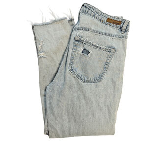 Light Wash High-Waisted Destroyed Mom Jeans in Blue