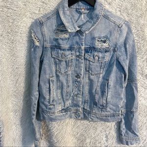 Light Wash Ripped Denim Jacket