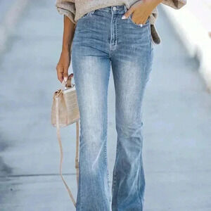 Light Wash Women's Solid Zipper Fly Flare Leg Jeans