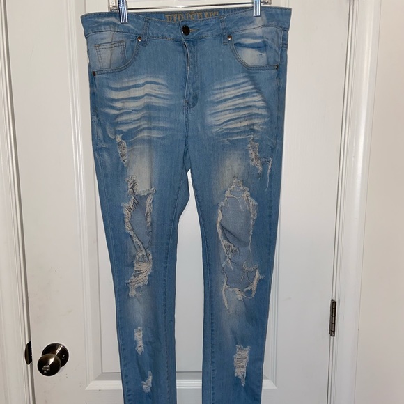 Light Washed Ripped Jeans Size 15/16 Condition 8/10 (Ripped Belt Loop & Small Stain) #VIPJeans #Jeans #Lightwash #Denim #Women’s