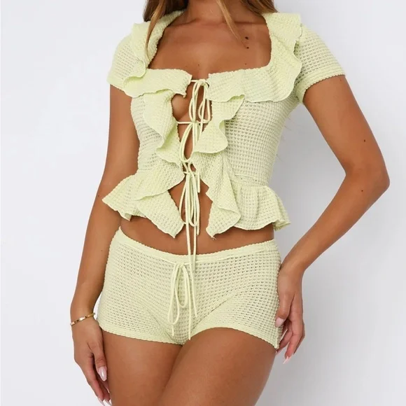 Light Yellow Ruffle Shorts