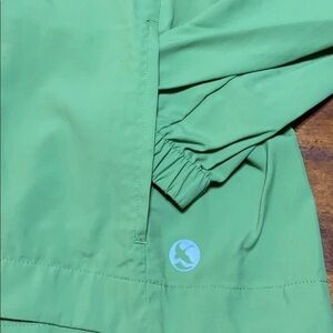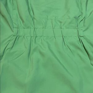 100% Nylon - light zip up jacket. 2 front pockets. Cute ruching in back for a fitted look. Excellent like new condition!