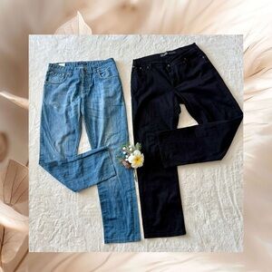 Light and Dark Blue Straight Fit Jeans Full Length Denim