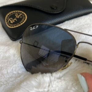 Perfectly fit medium sized polarized women’s ray bans. In used condition but still looks great. The right glass has a slight indentation to the glass which I have taken a picture of. I also took a picture of the front of it which shows that the damages cannot be seen too much front the front only the inside. Does not affect seeing.