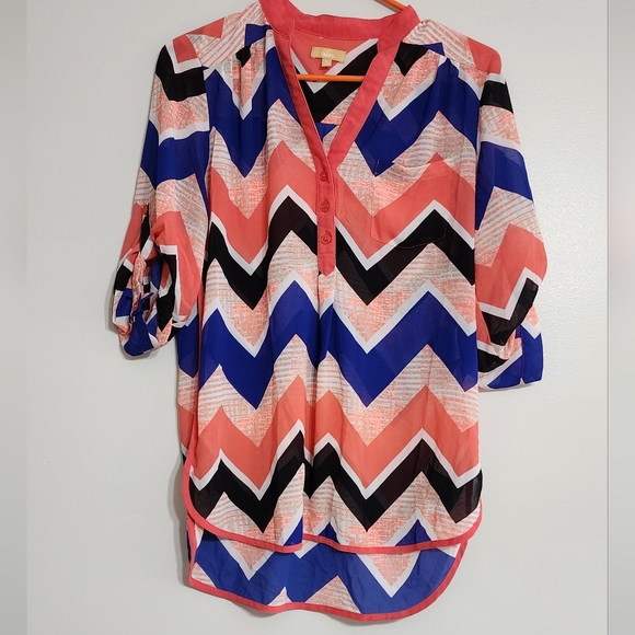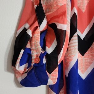 Perfect summer blouse to throw over a white or black cami and still get air flow on a hot day! Royal blue, peachy pink, white and black.