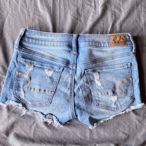 Distressed light blue American eagle shorts- worn once and in perfect condition. Size 2