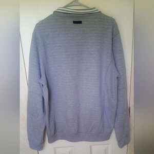 Light blue outer, gray and white stripes inner 1/4 zip Long sleeve sweater. Great condition. Size Large
