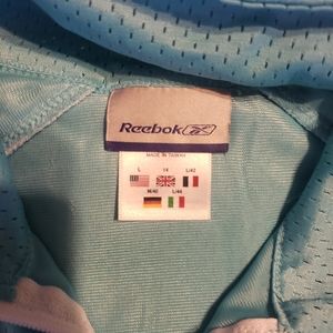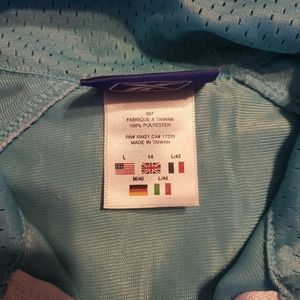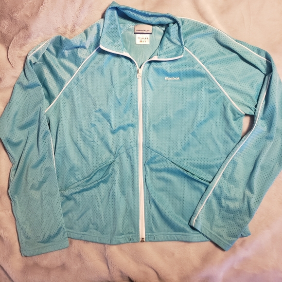 This light blue jacket is ventilated and fairly lightweight.. its smooth fabric and a great transition piece. It has zippered pockets to keep things secure!