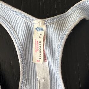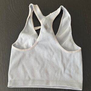 Light blue ribbed crop top with a racerback design. A little piling on the straps and a couple of small marks (see pics) but otherwise great condition!