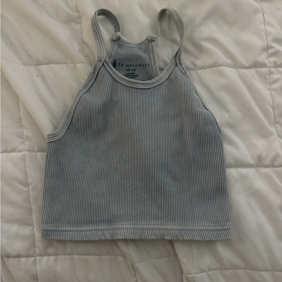 Stylish blue ribbed tank top with a racerback design.