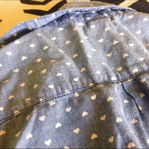 Small light blue, heart patterned blouse with iridescent buttons