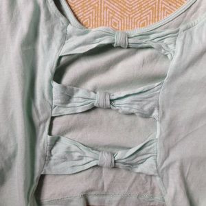 Size Medium. Light blue, open back with bows, crop top. Purchased at Charlotte Russe.