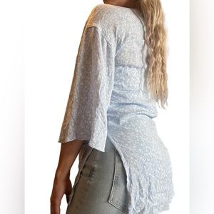 Material is very soft, there are cuts on both sides, can be tied or worn several ways, worn once to a baby shower