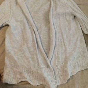 Super cute lightweight knit cardigan (no buttons just hangs, I will try on if interested). The sleeves flair out at the end and looks great over button downs.